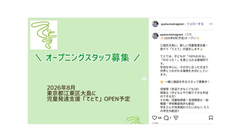 また、きこえない子の親としての思いは、以下のInstagramに書かれていますので、ぜひ、ご覧ください。