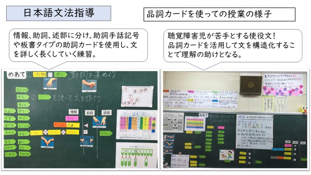 日本語文法の指導を行うためには、助詞、動詞、形容詞といったそれぞれの文法事項について、何がどのくらい理解できているか、指導前に評価が必要です。そして、その結果に基づいて個別に指導計画を立て、何から指導していけばよいか、具体的な指導内容・方法について考えます。 そこで今回は、きこえない子の文法指導で特に大切な3つの文法指導領域(助詞、動詞、形容詞)について、テスト用紙をダウンロードできるようにしました。ぜひ、対象のお子さん(小学生以上で基礎的・基本的な日本語習得に課題のある子)に使ってみて下さい。