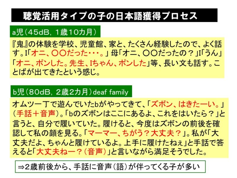 聴覚活用ができ、音声中心に日本語獲得が進んでいくタイプ