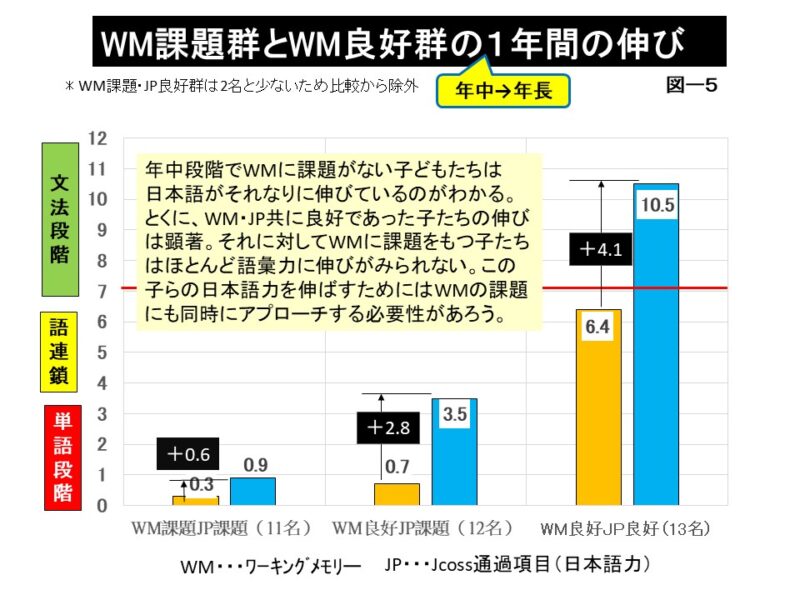 ・WM課題・JP(日本語)課題グループ(図4棒グラフ赤色の子ら12名)=図5左端の棒グラフ